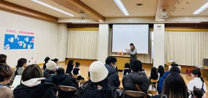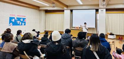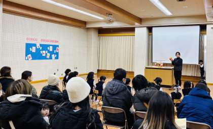 子どもたちの元気な声が戻ってきました。始業式では、先生たちからのお正月飾りの話を興味をもって聞いていました。3学期もいっぱい遊ぼうね。