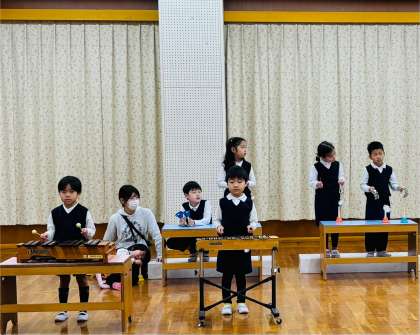 5歳児は、「ぼくらはみらいのたんけんたい」の曲に合う楽器の打ち方を、クラスの友達みんなで、思いを伝え合ったり試したりを繰り返しながら、子どもたちみんなが納得できる打ち方を考えてきました。