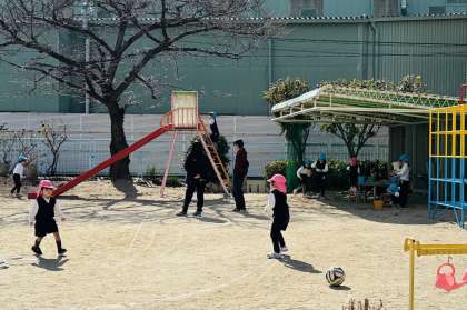 ポカポカと暖かかったですね。何回も来てくださっている方も、初めて来てくださった方もいらっしゃいました。広い園庭で、のびのびとやりたい遊びを見つけて楽しんでいました。