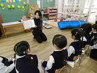 保健指導では、「衣服の着脱」について一つ一つ確認しながら話しました。靴下をクルクル小さくたたみ、上靴に入れることで靴下がなくならないように工夫する姿が見られました。