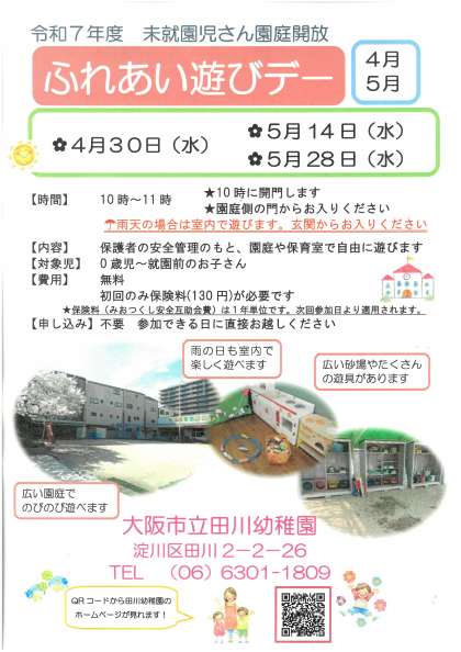 令和7年度 未就園児さん園庭開放が始まります!