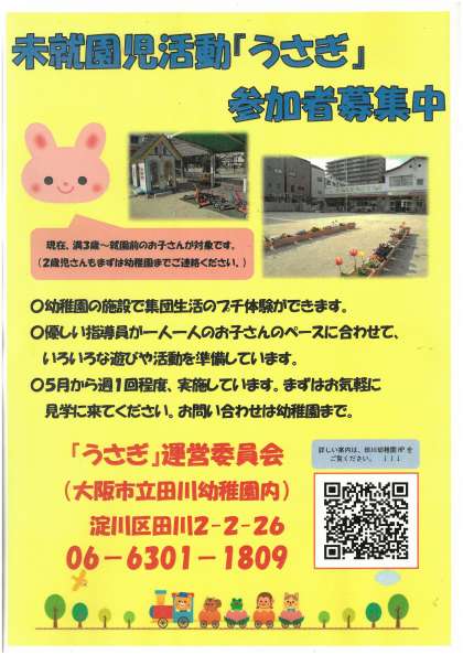 5月より、未就園児活動『うさぎ』を田川幼稚園内で実施します。