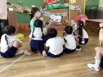 朝、登園した時から降園する時までずっと一緒に異年齢で過ごし、保育室でも園庭でも賑やかに遊びました。4歳児の保育室にあるままごとセットが懐かしく、5歳児の方が張り切って?いる姿も見られました。みんなで誕生日の絵本を見た後は、歌を歌い、幼稚園の誕生日をお祝いしました。笑顔あふれる一日になり、幼稚園の「嬉しい!」という声が聞こえてくるようでした。