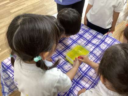 クッキング? 公開日 2025/06/12 更新日 2025/06/12 幼稚園日記 保育室では楽しいクッキング?タイムが始まりました。粉を入れる度に、泡立て器を使ってクルクルみんなで交代しながら混ぜていました。どうなるのかな?明日が楽しみですね。 いいね(0)