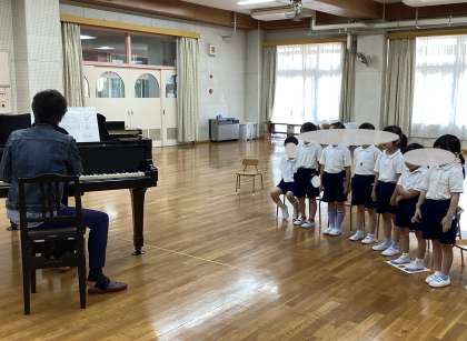 田川地域には、ピアニストとして幅広い分野でご活躍中の方がいらっしゃいます。今日は、子どもたちがもっと歌うことを楽しめるように、リズムや音程のお話とともに素敵なピアノ演奏も聴かせてくださいました。「ピアノを弾いてくれてありがとう」と、子どもたちから思わず声が上がりました。2学期にも来てくださいます。楽しみですね。