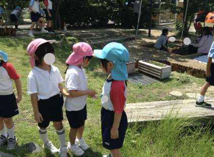 近隣の認定こども園で遊ばせてもらいました。5歳児のほし組さんには、田川幼稚園に来てもらったことがあるので、すぐにうちとけて、名前を呼び合っていました。ホールでジャンケン列車遊びをした後には、自然と一緒に関わって遊ぶ姿も見られました。次回の交流が今から楽しみです。