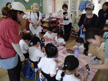 おうちの人にお弁当の時間に来てもらって嬉しそうな様子の子どもたちです。