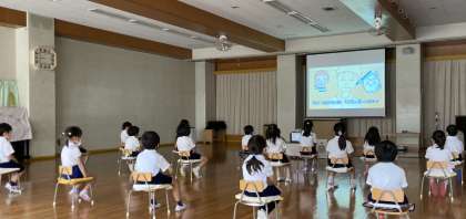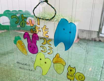 神津小学校健康委員会の児童が幼稚園の園児に向けて歯の大切さを知らせる手づくり紙芝居を作成してくれました。コロナ禍のため、動画で受け取り見せてもらいました。わかりやすい内容でとても集中して見ていました。視聴後、「歯を大切にしてねって言ってくれてうれしかった」とニコニコしていました。小学生のお兄さんお姉さんに教えてもらうのは、大人から言われるよりも身近に感じたようです。かわいい掲示物もいただき、廊下や手洗い場のよく見るところに掲示しました。