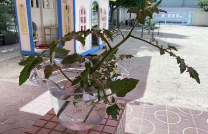 先日折れてしまったミニトマトを水につけておきました。すると、しっかりと根っこが生えてきました。トマトの生命力すごいですね。わき芽を摘んだ時も水につけておくと根っこが出てきますよ。お試しください。
