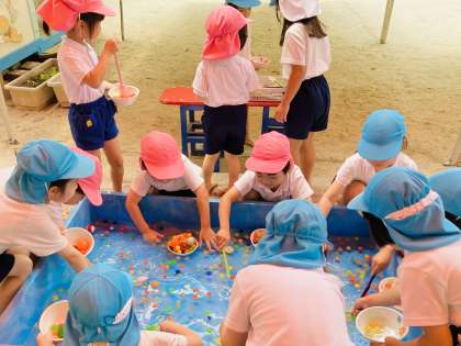 とても暑かったので水に触れる遊びが大人気。スーパーボールや水鉄砲で存分に遊びました。