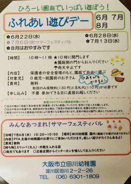7月6日には、PTA主催のお祭りサマーフェスティバルがあり、ご参加いただけます。