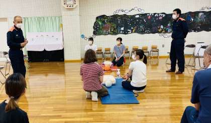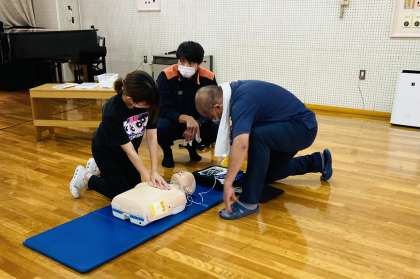 園児が帰った後、消防署の方に来ていただき、教職員が救命救急について学びました。