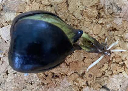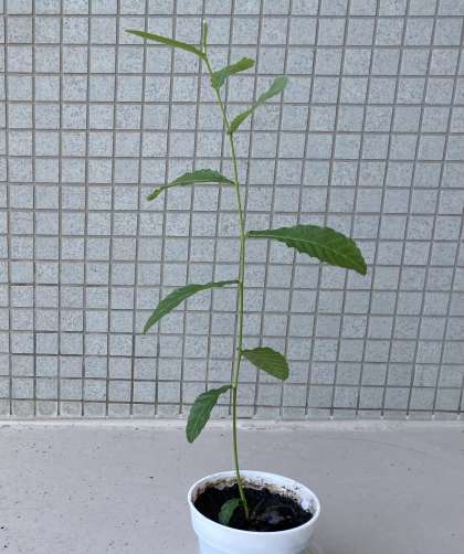 昨秋、地域の方からいただいたドングリ(クヌギ)を数個、乾燥しないように保存していたところ、夏前に根っこが出て、夏休み直前には芽が出て、現在約40センチまで育ちました。最近になって根っこが出てきたドングリもあります。生命力すごいですね。