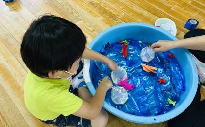 午後は、横になって休息した後.朝に折り紙を折ってつくった金魚をつかった金魚すくいが始まりました。