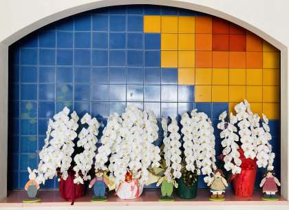 地域の方より、お祝いごとのお裾分けで、きれいなお花をいただきました。幼稚園の中がとても華やかになりました。