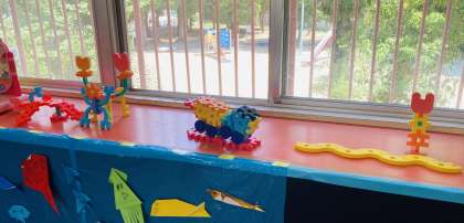 今朝は、ブロック遊びが盛り上がり、すてきなものができたので、帰りにおうちの人に見てもらいたいと飾っていました。