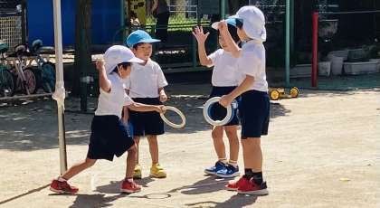暑いので、遊びの途中でお茶を飲む放送を入れ、全員が遊びの手を止めて、意識して水分補給をするようしています。