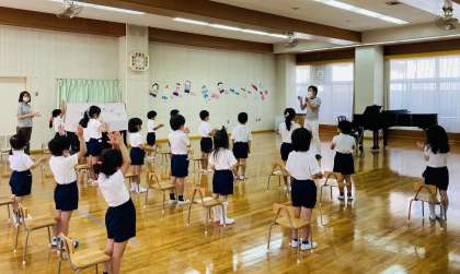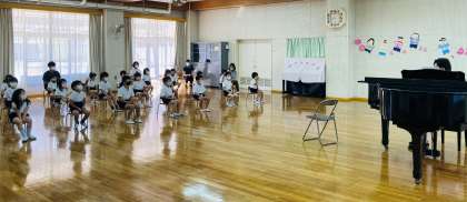 田川幼稚園では、地域の音楽家の先生から歌を教えていただく日があります。