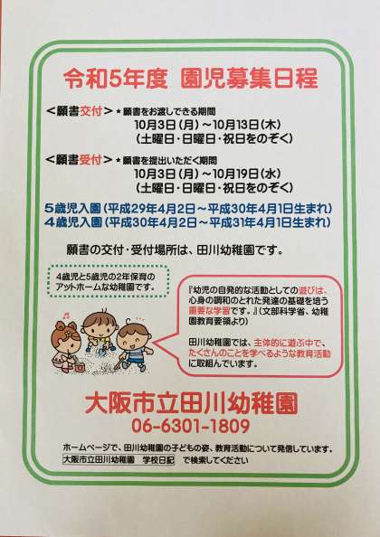 来年度の入園願書交付・受付開始