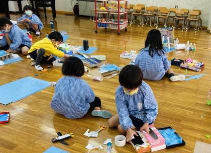 来週末の作品展に向かって、クラスで考えたテーマから一人一人がイメージを広げ、材料を選び自分なりの表現の仕方でつくり進めています。みんな表現の仕方が違い、子どもの発想の柔軟さを感じます。
