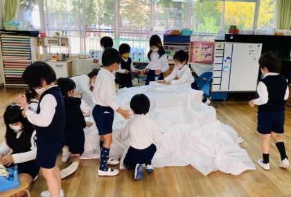 5歳児は、保育室をペンギンランドにしようと取り組んでいます。