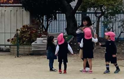 今日は12月最後のふれあい遊びデーでした。繰り返し来てくださる方も増えてきて、園児も「○○ちゃん来てくれるかな」と会えるのを楽しみにする姿が増えてきました。小さいお友達も園庭で遊ぶことに慣れてきて、どんどん遊びを見つけて生き生きとした表情で遊んでいる姿を見てうれしく思います。