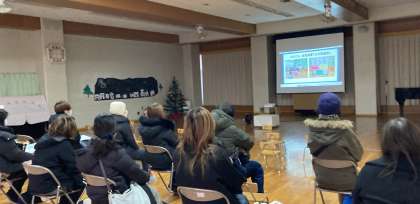 保護者には、2学期の園生活の様子や子どもたちに行った食育指導の内容等について写真を使いながら知らせました。