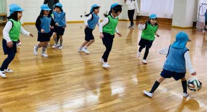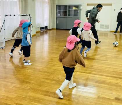 コーチが来てくれてのサッカー遊びは、今日が今年度最後です。年間を通して楽しくボールに触れ、意欲的に取り組むことができました。ありがとうございました。
