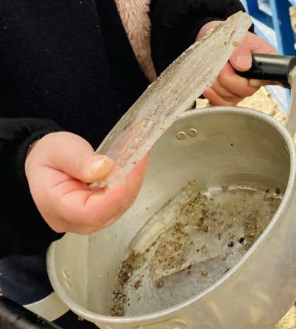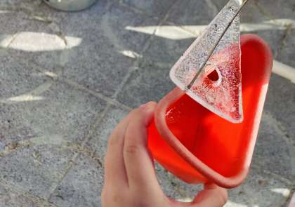 とても寒くなる予報が出ていたので、昨日子どもたちは氷ができますようにと、いろいろな入れ物に水を入れて寒くなりそうな場所を考えて置いて帰りました。