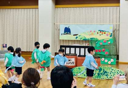 子どもたち、保護者、教職員、みんなが楽しみにしていた生活発表会。4歳児、5歳児、どちらのクラスも欠席ゼロで元気に登園できてよかったです。今年は学年ごとに時間を分けて行いました。