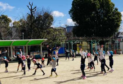 園庭では、今日も子どもたちの元気な声が響いていました。最近は「バナナくん体操」が人気です。