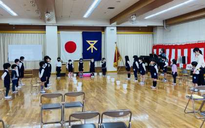 今日は、4歳児も参加して保育修了式の通し練習をしました。保育証書授与も思い出の言葉も自信をもってできるようになってきました。最後に歌う歌は、聴いていて胸が熱くなりました。