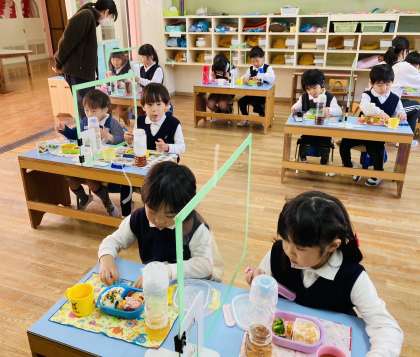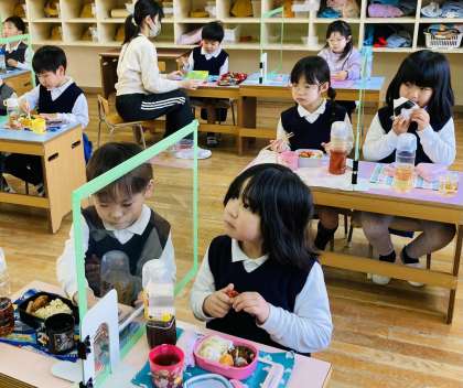 そら組みんなで食べるお弁当は、今日が最後でした。そら組全員出席で、くじ引きで座る場所を決め、おいしそうに食べていましたよ。2年間.愛情いっぱいのお弁当をありがとうございました。