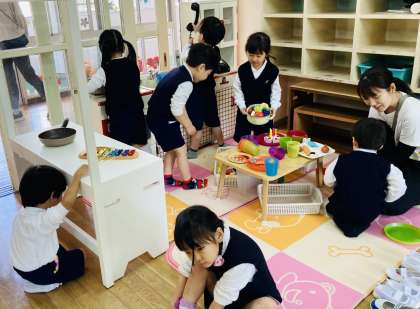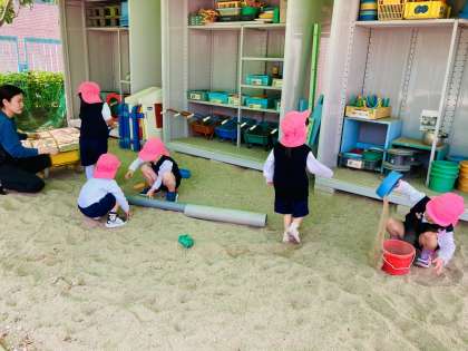 今日は、はな組保育室で遊んだり、園庭で遊んだりしました。