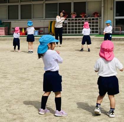 今日は、今年度はじめてのミックスジュースの日でした。5歳児が4歳児をやさしく誘って、一緒に音楽に合わせて体を動かして楽しみました。