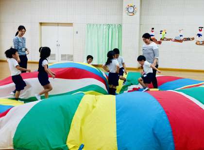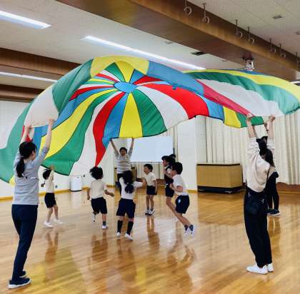 みんなで持って、ユラユラと動かしたり膨らませたり、楽しいことがいっぱいで、「もう一回しよう」の大合唱でした。