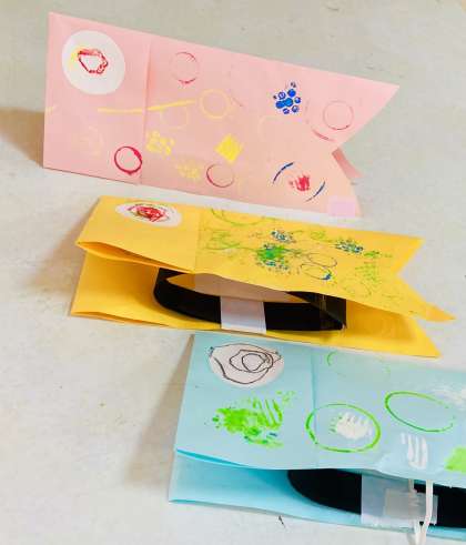 4歳児は、自分でつくったこいのぼりを頭にかぶり、ニコニコ顔でダンスをしました。