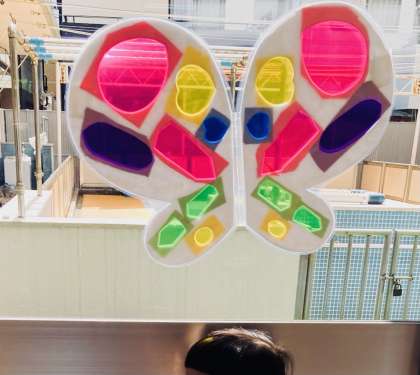 昨日、子どもたちが廊下に色付きの光が差し込んでいることに気付き、これなあに?と興味深々でした。