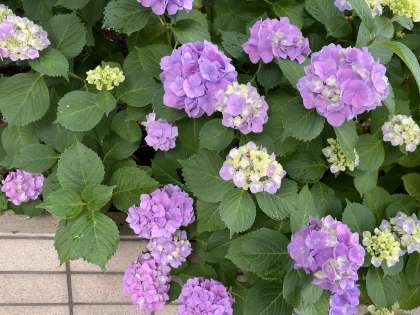 園庭のあじさいがきれいに咲いています。今日は、雨上がりで一段ときれいでした。
