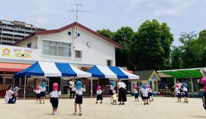 今日は、ふれあい遊びデーでした。さわやかな天気で、小さいお友達も園児と一緒に伸び伸びと遊んでいました。