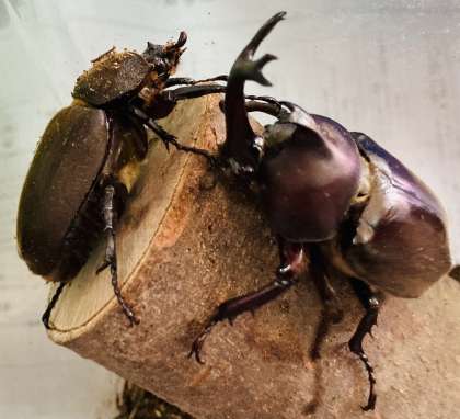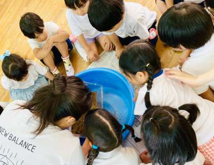 幼虫から飼い始めたカブトムシが、成虫になりました。ずっと楽しみにしていたので、大喜びしていました。オスもメスもいました。