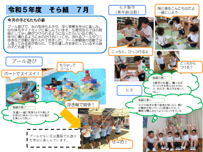 もう少しで夏休みです。生活リズムを整えて過ごし、2学期も元気いっぱいに遊びましょうね。