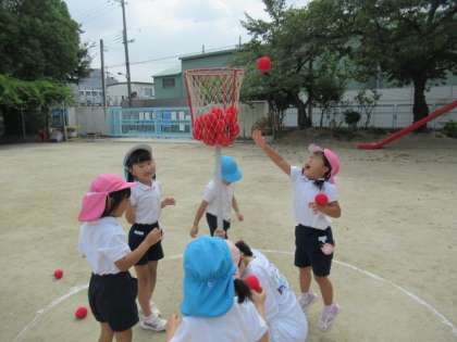 赤チームも白チームもたくさん玉が入って大喜び!「楽しかった!」と、笑顔いっぱいになっていました。
