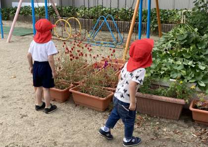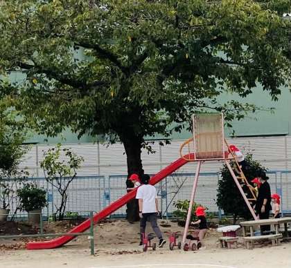 今日は、『うさぎ』の活動日でした。滑り台を何回も何回も繰り返し滑ったり、砂遊びや虫探しをしたり、楽しいことをどんどん見つけて遊んでいました。みんなでかけっこも楽しんでいました。