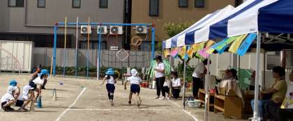 子どもたちが1学期から興味をもっていることをもとに、つくりあげた運動会です。クラスの友達や異年齢グループの友達と一緒に生き生きと取り組み、最後まで頑張っていました。