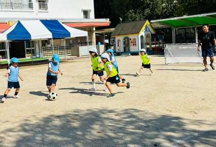 今日は、サッカーのコーチに来ていただき、ボールに親しむ遊びをしたり、チーム対抗で試合をしたりしました。
