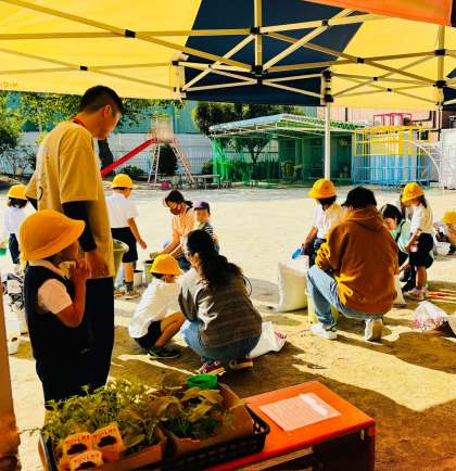 保護者と一緒に野菜の苗植えをしました。ブロッコリー、水菜、サニーレタスの中から、植えたいものを選びました。1番人気はブロッコリーでした。