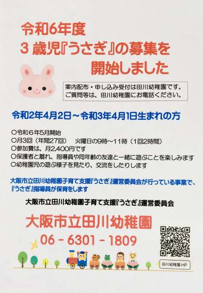 田川幼稚園の園庭で、園児と一緒に遊びませんか?