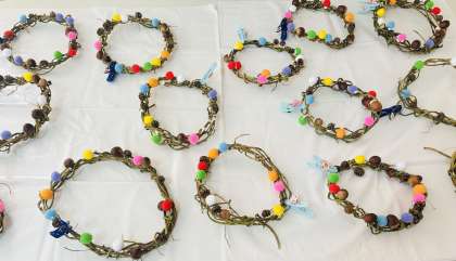 親子でサツマイモのつるでつくったリースの飾り付けもしました。