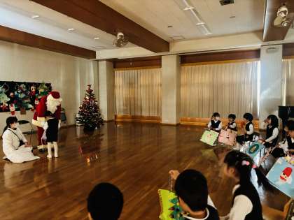 サンタさんは、子どもたちの質問に答えてくれたり、一人一人にプレゼントを渡してくれたりしました。
